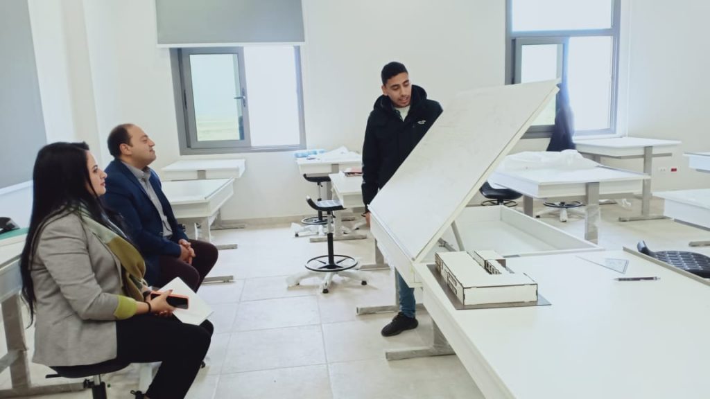 Under the auspices of Prof. Dr. Essam Elkordi- President of Alamein International University, and Prof. Dr. Hesham Gaber – Vice President for Academic Affairs, the Faculty of Engineering, headed by Prof. Dr. Remon Eskander- Director of Engineering Programs Organized a jury for projects at the end of the first semester- Fall 2022, for third-level students in the Architecture program, on Sunday, January 1, 2023, within the architectural studio course.